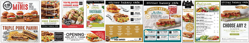 The cafes will be flooded with holiday-colored elements that include window posters, table number circles, gift card headers and a banner. We will once again decorate the cafes with 9’ lengths of pine garland and Baker Boy ornaments; feel free to also display your holiday wreaths or 2’ tree if you kept them from prior years. No other décor elements are approved for display. Please allow plenty of time to assemble and decorate the night of November 7th.